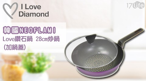 平均每入最低只要1090元起(含運)即可購得【NEOFLAM】韓國NEOFLAMI Love鑽石鍋28cm炒鍋-加鍋蓋(EK-IL-W28紫)1入/2入/3入/4入/5入。